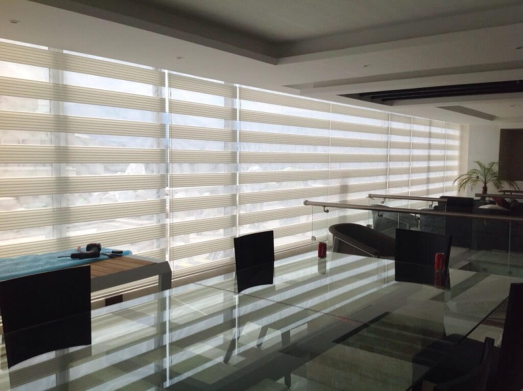 Se elaboran con lienzos compuestos por una combinación de tejidos transparentes y opacos que se intercalan a lo largo de la persiana, operan con un sistema de cadena que permite desplazar la tela interponiendo los tejidos opacos sobre los transparentes, de manera que hay o no visibilidad, eso lo decides tu.